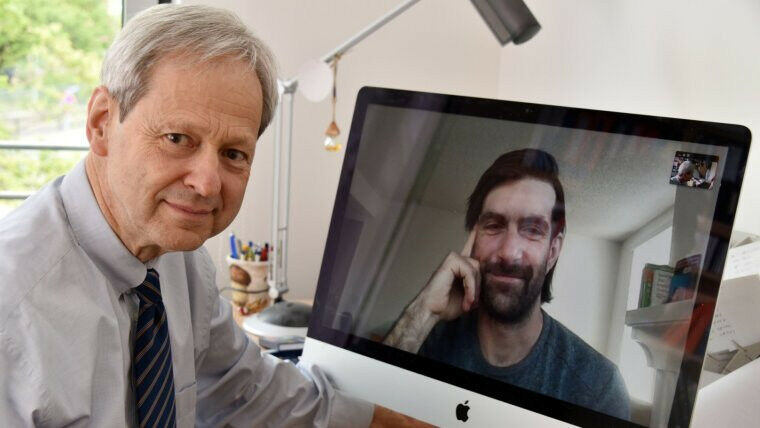 Wolfgang Weigand bespricht sich via Zoom mit dem Kollegen Mario Grosch Foto: Anne Günther (Universität Jena)