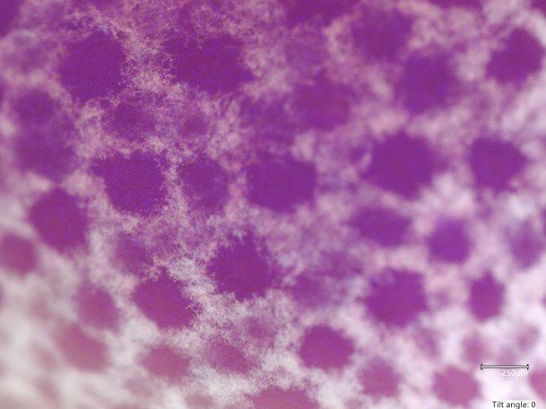 Matter Farbeindruck durch tupfenförmige Anordnung der Strukturfarben
