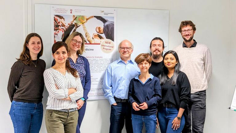 Norbert Schmitz (vierter von links) und das Team der Abteilung Population-Based Medicine - Die Universität Tübingen bietet ab dem Sommersemester 2023 den internationalen Masterstudiengang ,,Population-Based Medicine (PBM)" an. Der viersemestrige Studiengang bildet künftige Expertinnen und Experten für Gesundheitsfragen einer Gesellschaft aus. Der Studiengang wird komplett auf Englisch angeboten und richtet sich damit gleichermaßen an deutsche und internationale Studierende. Ein Pflichtpraktikum im dritten Semester kann in Deutschland oder im Ausland absolviert werden. Die Studierenden des Masterprogramms werden sich interdisziplinär mit Faktoren beschäftigen, die sich auf die Gesundheit der Bevölkerung auswirken können - vom individuellen Verhalten über Umwelteinflüsse, soziale und kulturelle Aspekte bis hin zu politischen und wirtschaftlichen Zusammenhängen. Sie erlernen dafür maßgeblich den Umgang mit großen medizinischen Datensätzen, statistischen und epidemiologischen Methoden. Jeder Studierende wird während des Studiums von einem persönlichen Mentor oder einer Mentorin begleitet und beraten.