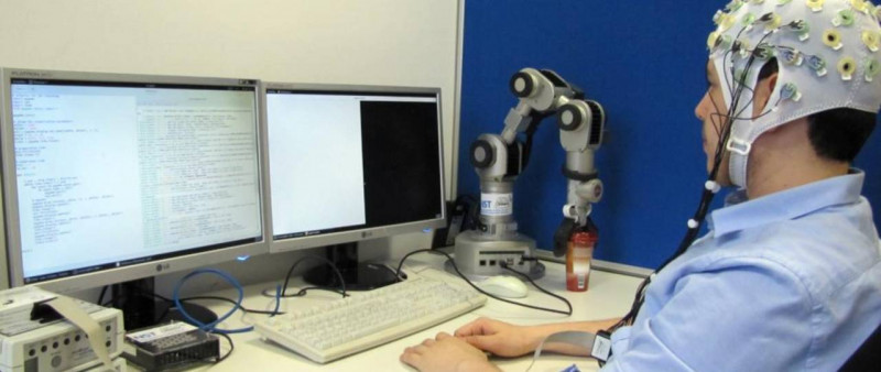 Gehirn-Rechner-Schnittstellen verarbeiten Signale des Gehirns im Computer. Diese Technologie bildet die Grundlage für die Software von MyelinS. Zied Tayeb / TUM