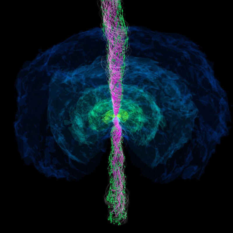 - The full picture: The simulation, which used 130 million CPU hours, incorporates the effects of general relativity, neutrino radiation, and magnetohydrodynamics. It shows a rapid collapse to a black hole and the subsequent formation of a jet.