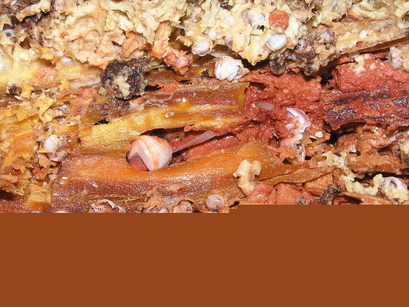 Xylophaga, auch Schiffsbohrwurm genannt, gehört zu den Tiefseeorganismen, die das Holz nach einem Jahr besiedelt hatten. [weniger]