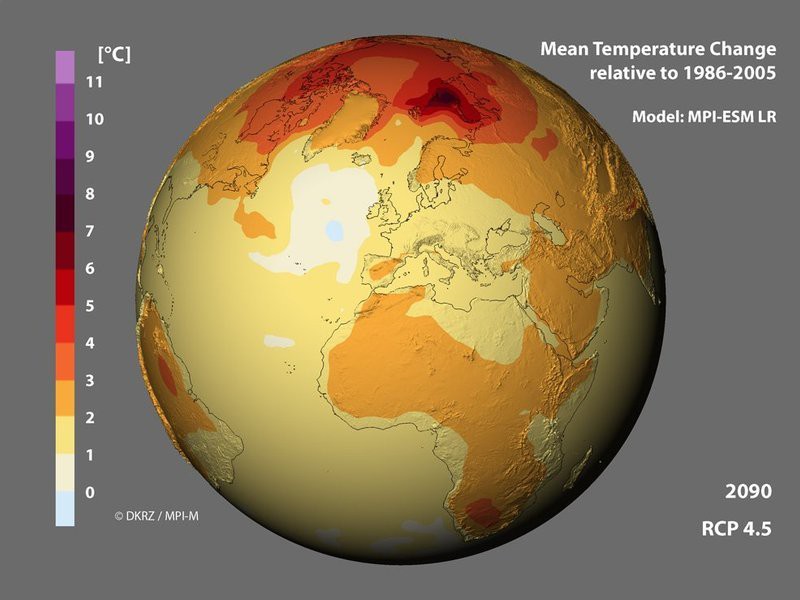 Im 21.Jahrhundert hat sich die Erde deutlich schwächer erwärmt, als sämtliche Modelle vorhersagen - das war nur Zufall - Skeptikern, die immer noch am menschengemachten Klimawandel zweifeln, bricht nun eines ihrer letzten Argumente weg: Zwar gibt es eine Erwärmungspause, die Erdoberfläche hat sich seit der Jahrtausendwende also deutlich schwächer aufgeheizt, als sämtliche relevanten Klimamodelle vorhergesagt hatten. Die Kluft zwischen berechneter und gemessener Erwärmung entsteht aber nicht, weil die Modelle systematische Fehler machen, wie die Skeptiker vermutet hatten, sondern weil es im Klima stets zu zufälligen Schwankungen kommt. Das haben Jochem Marotzke, Direktor am Max-Planck-Institut für Meteorologie in Hamburg, und Piers M. Forster, Professor an der Universität Leeds in Großbritannien, mit einer umfassenden statistischen Analyse nun eindrücklich belegt. Damit ist auch klar, dass die Modelle den menschengemachten Klimawandel nicht prinzipiell überschätzen. Die Erderwärmung wird am Ende dieses Jahrhunderts also höchstwahrscheinlich gravierende Ausmaße erreicht haben - wenn die Weltgemeinschaft nicht endlich beherzt dagegen vorgeht. Prognosen ohne systematische Fehler: Klimamodelle, wie das Modell MPI-ESM LR des Max-Planck-Instituts für Meteorologie, sagen bis zum Ende dieses Jahrhunderts eine deutliche Erwärmung vor allem an den Polen voraus. Die Erwärmungspause, die Klimaforscher seit der Jahrtausendwende beobachten, sagt allerdings kein Modell voraus.