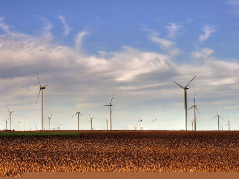 Große Windparks mit einer hohen Dichte installierter Leistung bremsen den Wind und erzeugen weniger Strom als bisher angenommen. Aus Wind lässt sich weniger Energie zapfen als bisher angenommen. Das Umweltbundesamt etwa kam in einer Studie aus dem Jahr 2013 noch zu dem Schluss, dass sich mit Windenergie knapp sieben Watt elektrische Leistung pro Quadratmeter erzeugen lassen. Doch wie ein internationales Team um Forscher des Max-Planck-Instituts für Biogeochemie in Jena nun zeigt, ist diese Rate deutlich niedriger. Die Forscher berechneten für den US-Bundesstaat Kansas, dass sich dort maximal 1,1 Watt Elektrizität pro Quadratmeter erzeugen lassen. Denn die Rate steigt nicht linear mit der installierten Leistung, weil die Turbinen den Wind bremsen. Das macht sich vor allem bei einer sehr hohen Dichte installierter Windkraftleistung bemerkbar.