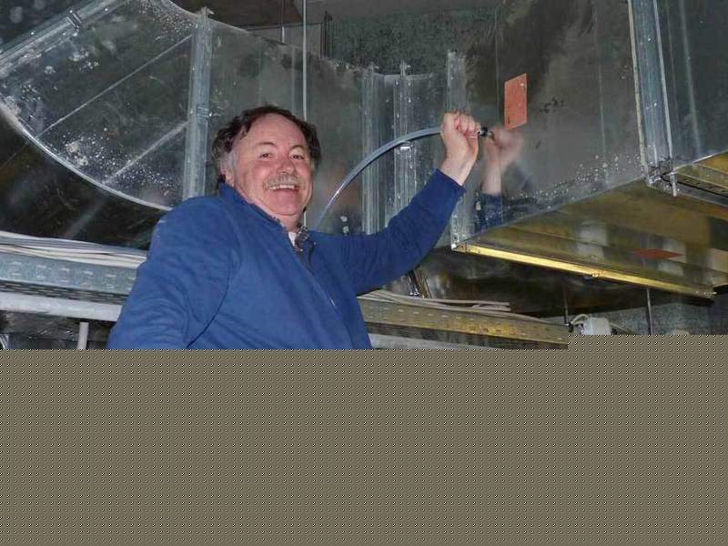 Kinoluft angezapft: Thomas Klüpfel bringt am Belüftungssystem eines Kinosaals im Mainzer Cinestar einen Schlauch an, über den die Abluft in ein Massenspektrometer geleitet wird. Dieses analysierte im 30-Sekunden-Takt die Luft während zahlreicher Filmvorführungen. Vor allem spannende und lustige Filme hinterlassen demnach eine eindeutige Signatur in der Luft. [weniger]
