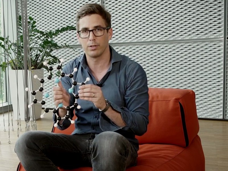 Wilhelm Auwärter mit dem Modell einer Porphin-Verbindung. (Foto: TUM)