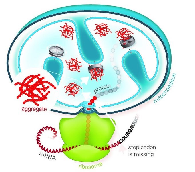 Qualitätskontrolle für fehlerhafte Proteine: Versagt sie, können sich Proteine, die für die Mitochondrien bestimmt sind, zu toxischen Aggregaten anreichern und die Mitochondrien schädigen. [weniger]