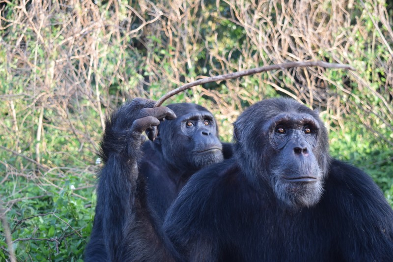 Kalema und Eddie, zwei der Versuchsteilnehmer auf Ngamba Island, Uganda.