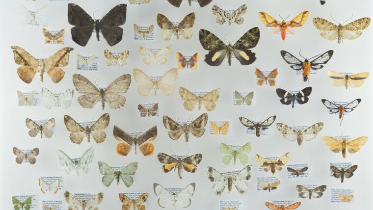 Exemplarische Auswahl von neotropischen Spannern (links) und Bärenspinnern (rechts),... Foto: Gunnar Brehm/FSU