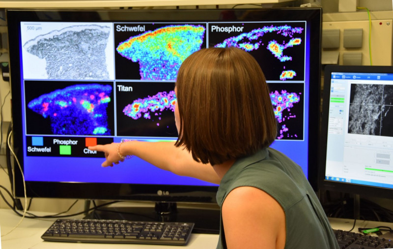 Die präparierten Hautproben werden zur Analyse in das Gerät geschoben.