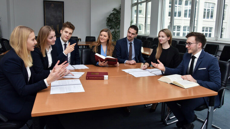 Jura-Studierende treten beim internationalen Rechtswettbewerb Vis Moot Court gegen Teams aus aller Welt an. Das Jenaer Vis-Moot-Team (v.l.n.r. Lucas Ibers, Pauline Köstner, Juliane Wilke, Elena Krenn, Kristin Paul, Lukas Tepke und Alexander Holzer von der Rechtswissenschaftlichen Fakultät. Foto: Anne Günther/FSU Wer muss bezahlen, wenn gefrorenes Hengstsperma beim Zoll Kosten in Millionenhöhe verursacht? Mit dieser ungewöhnlichen Frage beschäftigen sich fünf Jura-Studierende der Friedrich-Schiller-Universität Jena. Sie nehmen am aktuellen Willem C. Vis Moot Court teil, dem größten englischsprachigen Wettbewerb für Wirtschaftsrecht. Dort treten sie gegen über 350 Teams aus aller Welt an, um in einem simulierten Schiedsverfahren ein Urteil zum Fall um den teuren Pferdesamen zu finden. Momentan befinden sich die Jenaer am Beginn der mündlichen Phase des Wettbewerbs, in der sie unter anderem bei Testläufen in Stuttgart am 1. Februar und in Bukarest vom 1. bis 3. März prozessieren.