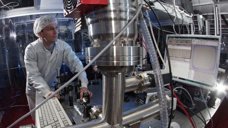 Physiker Dominik Hoff beim Bedienen eines Phasenmeters, mit dem Laserpulse vermessen werden... Foto: Jan-Peter Kasper (Universität Jena)