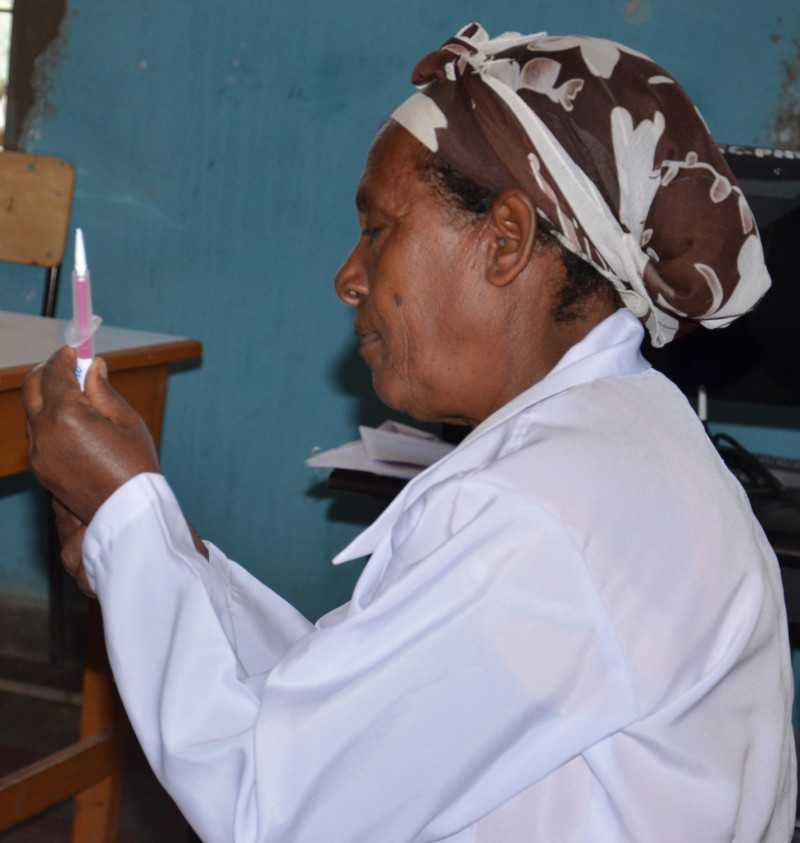Gesundheitsarbeiterin aus dem Dabat Research Center in Äthiopien bereite eine Vorsorgeuntersuchung zu Gebärmutterhalskrebs vor: In der Mehrheit der untersuchten Länder (37 von 55) berichteten rund 30 Prozent der Frauen, jemals an einer solchen Untersuchung teilgenommen zu haben. Foto: Hermann Bussmann