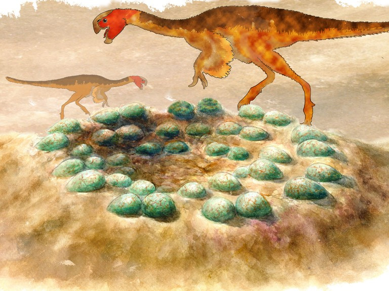 Rekonstruktion eines Geleges mit Silhouetten der Oviraptoren.