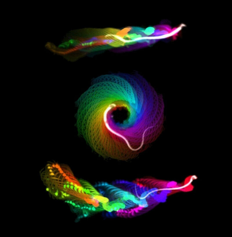 Computergestützte Analyse von lichtmikroskopischen Daten, die den linearen Schwimmweg eines normalen Spermas (oben) und die abnormen kreisförmigen und diagonalen Schwimmwege der mutierten Spermien (Mitte und unten) zeigen, denen die Tubulin-Glycylierung fehlt.