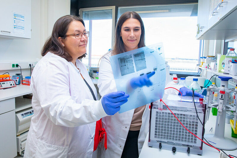 Prof. Schreiner ( links ) und Mai: Sie stehen vor einem ,,Wet Tank', mit dem sie das ,,Western Blot Verfahren' durchführen, um Proteine mit spezifischen Antikörpern nachzuweisen. Anschließend sind die Proteine auf Röntgenfilmen darstellbar. Copyright: Karin Kaiser / MHH. Neue Forschung zur Vermehrung von Adenoviren Stand: 18. Oktober 2022 Entzündungen des Magen-Darm-Trakts und der Bindehaut, aber auch der Leber, des Gehirns, der Harnwege und der Lunge - die Liste der Erkrankungen, die eine Infektion mit humanen Adenoviren verursachen kann, ist lang. Hinzu kommt, dass es die Viren weltweit häufig gibt, diese Infektionen immer häufiger vorkommen und auch latent werden können. Dann Überdauern sie in den Zellen, haben zeitweise keine nachweisbare Wirkung, können aber wieder reaktivieren. Bei gesunden Erwachsenen verlaufen Adenovirus-Infektionen meist ohne oder mit milden Symptomen.