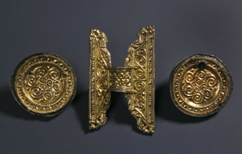 Grave goods from inhumation grave 3532 at Issendorf cemetery in Lower-Saxony, Germany. Individuals buried at Issendorf cemetery during the Middle Ages are genetically closely related with people who migrated into England during the Anglo-Saxon period.