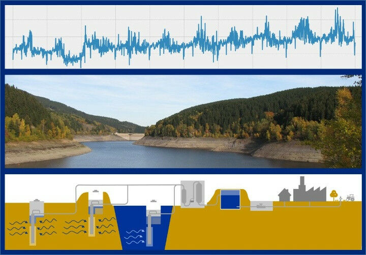 In cooperation with water supply companies, the researchers are developing concepts and tools for ensuring the supply of drinking water even during long periods of drought and heavy rain. Photo: Harzwasserwerke, Collage TZW