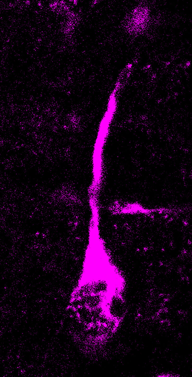 Microscopy picture of a dividing basal radial glial cell, a progenitor cell type that generates neurons during brain development. Modern human TKTL1, but not Neandertal TKTL1, increases basal radial glia and neuron abundance.