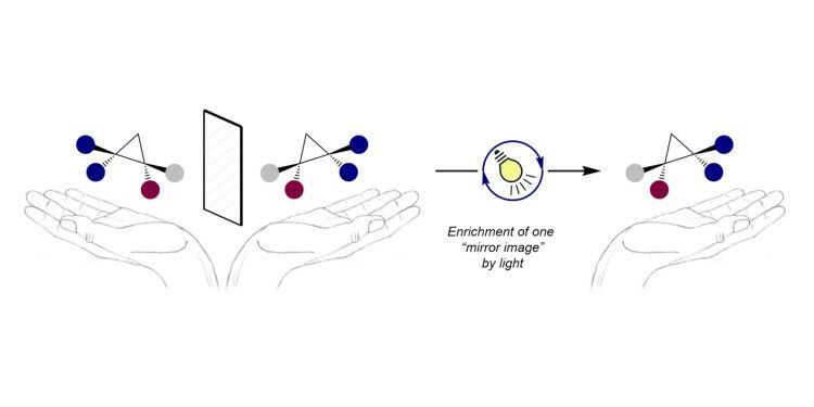 Chemists from the University of Münster publish new study in -Nature-. Just like our hands, certain organic molecules relate to each other like an image and its reflection - a phenomenon that chemists call 'chirality' or 'handedness'. AG Gilmour Just like our hands, certain organic molecules relate to each other like an image and its reflection - a phenomenon that chemists call "chirality" or "handedness". The two mirror images of the same molecule, namely both enantiomers, often possess different biological properties. For example for drug discovery, many times only one of the structures is relevant. However, chemical synthesis methods often create a 1:1 mixture of both forms. Therefore, the selective conversion of these mixtures into one selected form is of great importance.
