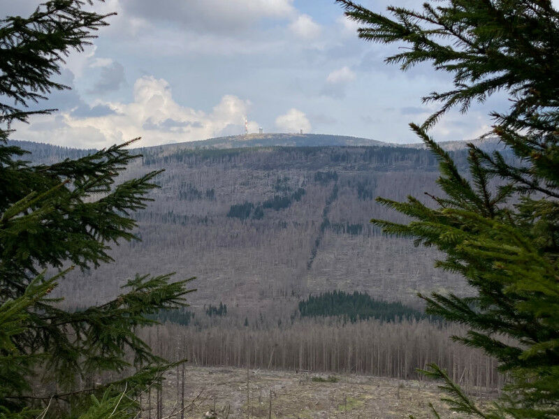 Spruce monoculture on the Brocken in the Harz mountain range in May 2022. The trees in this area are increasingly weakened by high temperatures and extended periods of drought.