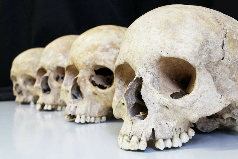 Skulls excavated from an archaeological site.