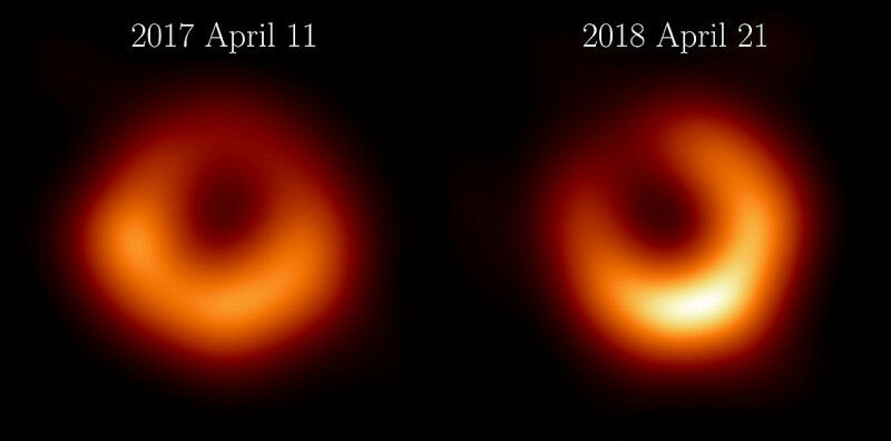 The Event Horizon Telescope Collaboration has released new images of M87* from observations taken in April 2018, one year after the first observations. The new observations reveal the familiar, bright ring of emission of the same size as found in 2017. This bright ring surrounds a dark central shadow, and the brightest part of the ring in 2018 has shifted by about 30º relative from 2017 to now lie in the 5 o'clock position. (Image: The Event Horizon Telescope Collaboration) One year after the discovery image of the black hole M87*, improved observations of the Event Horizon Telescope (EHT) Collaboration give a better picture showing a persistent black hole shadow. The Event Horizon Telescope (EHT) Collaboration including scientists at Julius-Maximilians-Universität (JMU) Würzburg has released a new image of M87*, the supermassive black hole residing at the heart of the galaxy Messier 87. This latest revelation builds upon the historic 2019 release, marking the first-ever image of a black hole. The latest observation campaign showcases a persistent black hole shadow, offering crucial insights into the nature of M87*.