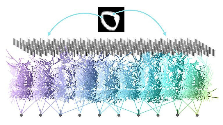 This has been achieved using a method that is also used to train artificial neuronal networks: ’backpropagation of error’. With the aid of backpropagation, an artificial neuronal network adjusts its parameters during training so that a given input results in a desired output. The network keeps adapting itself until it reliably achieves the desired task. In this way, the network learns which features and connections in the data are important to a specific process, in order also to deliver the correct results given new, similar examples. The Tübingen researchers have transferred this training principle to brain simulations.
