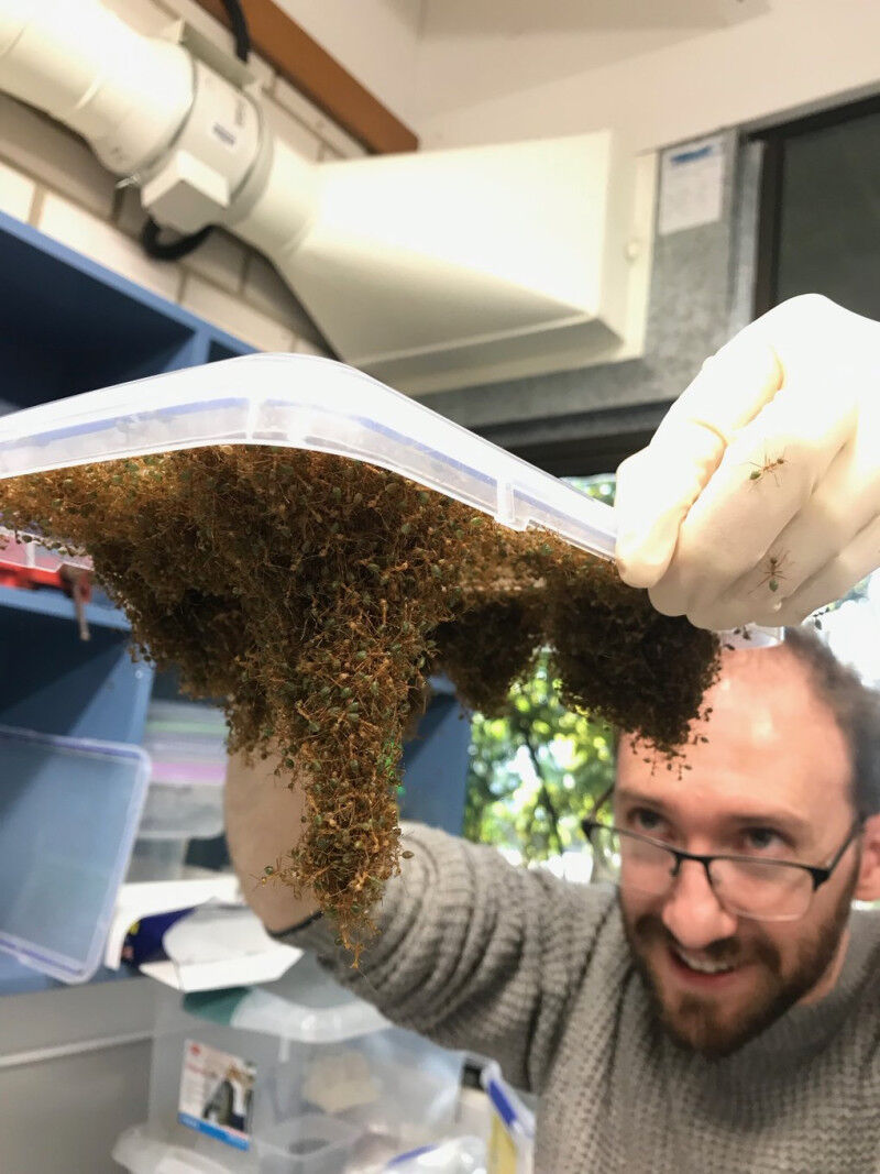 Dr Carlesso worked with Madelyne Stewardson and Dr Chris Reid from Macquarie University to measure the force different sized ant teams could apply while building nests.
