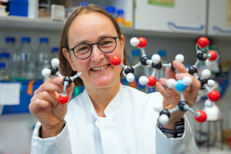 A small appendage can have a big effect: PD Dr. Martina Mühlenhoff with the molecular model of sialic acid and an acetyl group. Copyright: ,,Karin Kaiser / MHH’.