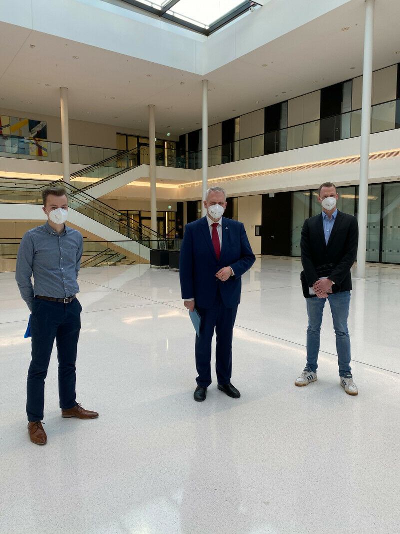Der niedersächsische Wissenschaftsminister Björn Thümler mit dem AStA-Vorsitzenden der MHH Lennart Simon (rechts) und dem AStA-Referenten Carlos Oltmanns, Copyright: Lennart Simon/AStA