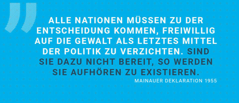 Zitat aus der Mainauer Deklaration von 1955 © Max-Planck-Gesellschaft - Mehr als 100 Nobelpreisträgerinnen und Nobelpreisträger verschiedenster Disziplinen rufen angesichts des von russischem Boden ausgehenden Krieges in der Ukraine zum Frieden auf. Dazu haben sie eine Deklaration unterzeichnet, die von der Max-Planck-Gesellschaft initiiert wurde und die von den Lindauer Nobelpreisträgertagungen unterstützt wird. Die Deklaration knüpft an die Mainau Deklaration 1955 gegen den Einsatz von Atomwaffen an. Sie wurde von Otto Hahn, 16-facher Teilnehmer der Lindauer Tagungen und erster Präsidenten der Max-Planck-Gesellschaft, bei der 5. Lindauer Nobelpreisträgertagung mit initiiert. In der aktuellen Erklärung heißt es: ,,Die Entdeckung der Atomkernspaltung schuf die Grundlage für den Bau atomarer Vernichtungswaffen. Deren derzeitiges Volumen hat das Potential, die Erde für Menschen unbewohnbar zu machen und die menschliche Zivilisation auszulöschen.
