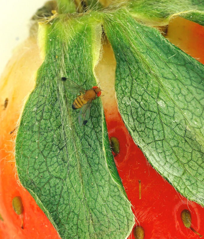 Beta-Cyclocitral ist für den Obstschädling Drosophila suzukii besonders attraktiv. Die 2014 in Deutschland erstmals verstärkt aufgetretene Kirschessigfliege Drosophila suzukii legt ihre Eier in frisches, noch nicht geerntetes Obst. Befallene Früchte sind oftmals zusätzlich noch mit Bakterien und Pilzen infiziert und somit für den Verkauf oder eine Weiterverarbeitung ungeeignet. Eine wirksame Bekämpfung des Schädlings ist bislang nur mit Insektiziden möglich. Wissenschaftler am Max-Planck-Institut für chemische Ökologie haben jetzt einen Blattduftstoff identifiziert, der für Kirschessigfliegen besonders attraktiv ist. Beta-Cyclocitral lockt nur die Kirschessigfliege, aber keine anderen verwandten Taufliegenarten an. Die Forscher konnten zeigen, dass die Vorliebe des Insekts für diesen Blattduft physiologisch mit einer erhöhten Antwortstärke bestimmter Geruchssinneshaare auf der Antenne einhergeht.
