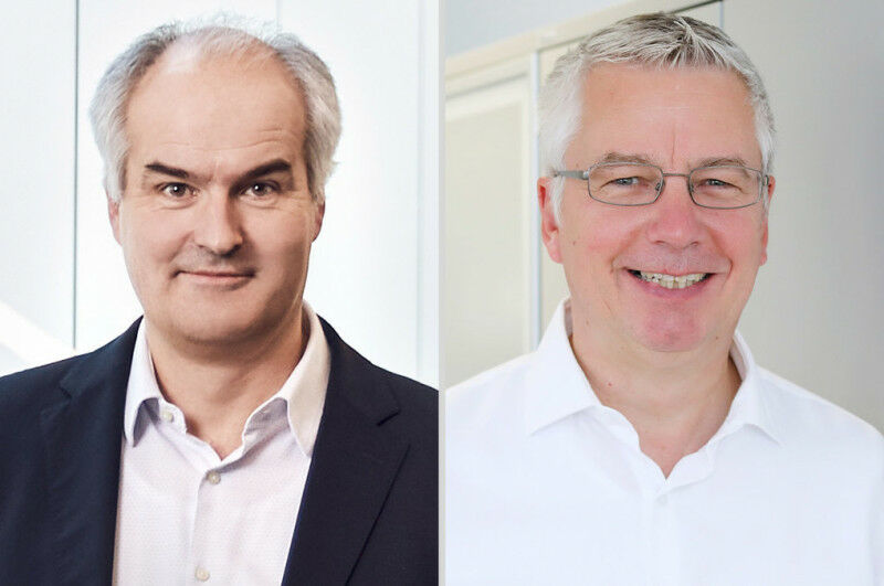 Christoph Gürtler ( links ) und Walter Leitner haben einen Weg gefunden, das Treibhausgas CO2 zu einem Kunststoff zu verarbeiten. Dafür hat das europäischen Patentamt die beiden Chemiker als Finalisten in der Kategorie Industrie des Europäischen Erfinderpreises 2021 nominiert. Covestro/RWTH - Walter Leitner und Christoph Gürtler sind für ihre Beiträge zu einer nachhaltigen Chemieproduktion unter die drei Finalisten gewählt worden Die beiden Chemiker haben einen Weg gefunden, aus dem Treibhausgas CO