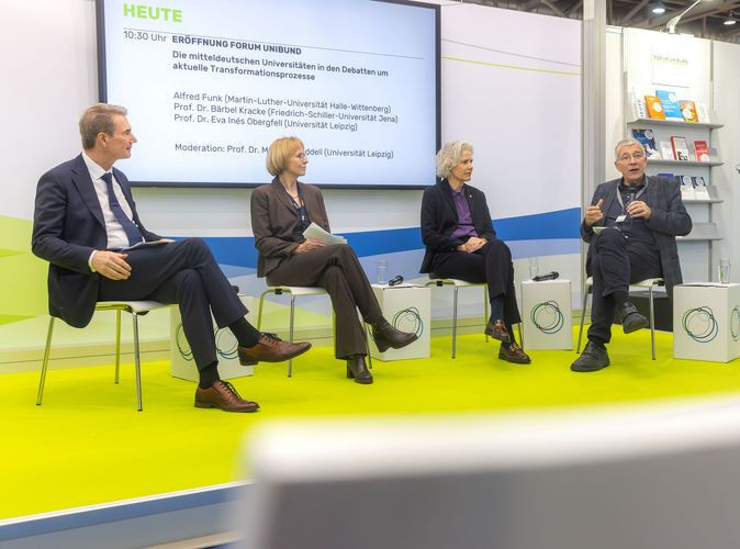 Wissenschaftliche Antworten auf aktuelle Fragen hatten die Universitäten Leipzig, Halle und Jena für die Leipziger Buchmesse angekündigt - und sie erreichten mit diesem Ansatz viele Messebesucher:innen. In 21 Vorträgen und Podiumsgesprächen kamen Wissenschaftler:innen beim Forum Unibund in der Halle 2 zu Wort. Alle davon waren gut besucht, zum Abschluss konnte das Organisationsteam sogar einen Besucherrekord verzeichnen.