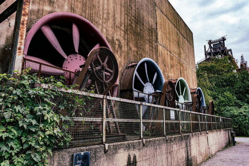 Ventilatoren eines ehemaligen Kühlwerks im Landschaftspark Duisburg-Nord: Dort wie in anderen Orten des Ruhrgebiets wird der Strukturwandel durch Deindustrialisierung direkt greifbar. (Bild: ahundt/pixabay)