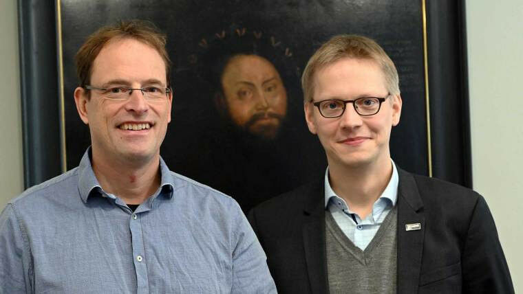 Die Leibniz-Preisträger 2020 Dr Johannes Grave (r.) und Markus Reichstein. Foto: Jan-Peter Kasper (Universität Jena)