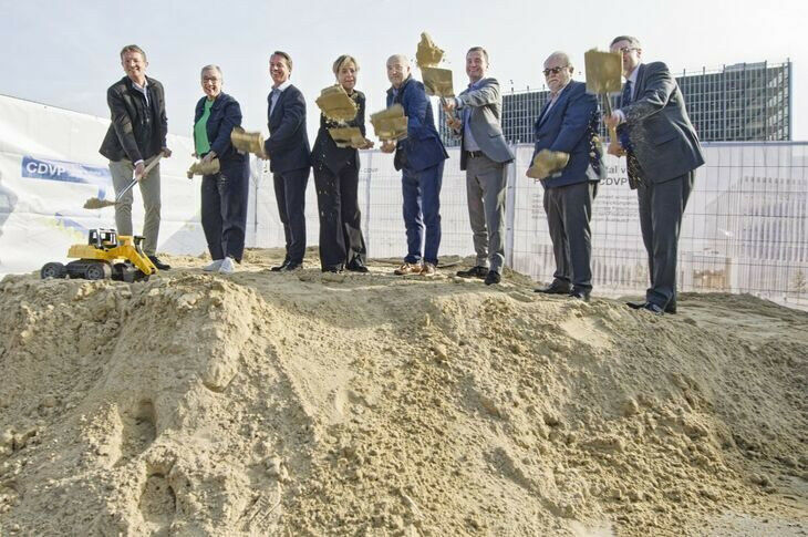 ,,Die RWTH Aachen ist - auch aufgrund ihres interdisziplinären Ansatzes - federführend bei der Erforschung von Produktionsstätten. Mit unserer Forschungsund Transferstärke in der digitalen vernetzen Produktion haben wir uns als RWTH mit unseren Netzwerkpartnern und -partnerinnen für das Rheinische Revier und von dort aus auf internationaler Ebene eine Vorreiterrolle erarbeitet. Der Impact aus dem CDVP wird weltweit prägend sein und unsere Stadt und die Region werden von dieser zukunftsweisenden Forschung hier am Campus Melaten profitieren", erläutert Professor Ulrich Rüdiger, Rektor der RWTH, beim Spatenstich mit Ministerin Neubaur, Regierungspräsident Dr. Thomas Wilk, Aachens Oberbürgermeisterin Sibylle Keupen, Städteregionsrat Dr. Tim Grüttemeier und Stefan Bötel von Nickl & Partner Architekten.