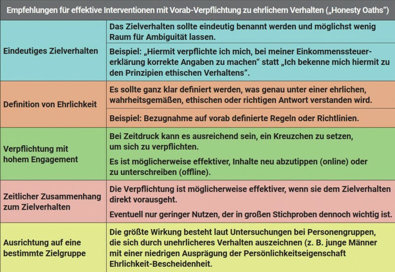 Waren Sie schon einmal in Ihrer Steuerklärung unehrlich, um weniger Steuern zahlen zu müssen’ Hätte Sie ein schriftlicher -Ehrlichkeitseid-, den Sie unterschreiben müssen, vielleicht davon abgehalten’ Ja, das ist sehr wahrscheinlich, sagt eine Gruppe von mehr als 40 internationalen Wissenschaftlerinnen und Wissenschaftler, die dieses Phänomen in einer Mega-Studie mit über 21.000 Probandinnen und Probanden mit Hilfe einer umfangreichen psychologischen Untersuchung - einer Art Steuerhinterziehungsspiel - analysiert haben. Das erstaunliche Ergebnis: Wurde der Ehrlichkeitseid richtig formuliert und den Teilnehmenden zum richtigen Zeitpunkt vorgelegt, reduzierten sich die Steuerverluste in der Simulation um bis zu fast 50 Prozent.