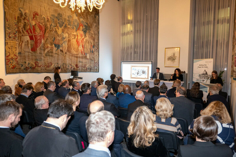 Drei Tage lang, beginnend am vergangenen Montag, haben Hubert Wolf und sein Team Anschließend arbeiten sie mehrere Tage in den Archiven weiter und analysieren gemeinsam ihre Funde. Einer Einladung des deutschen Botschafters beim Heiligen Stuhl, Dr. Bernhard Kotsch, zur Projektpräsentation folgten am Dienstagabend fast 100 Persönlichkeiten aus Rom, darunter zahlreiche Botschafter anderer Länder. 90 Minuten lang schilderte das münstersche Team auf Basis der jeweiligen Bittbriefe die Schicksale mehrerer jüdischer Familien. Die Gäste hörten gebannt zu und spendeten am Ende großen Beifall. Und sie alle nickten, als ein Redner bereits zu Beginn des Abends in seinem Grußwort hervorhob, dass es sich bei ,,Asking the Pope for Help" um ein