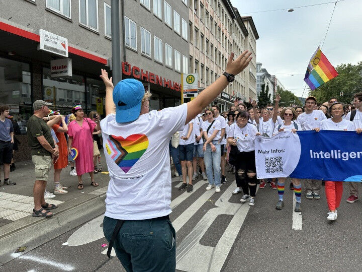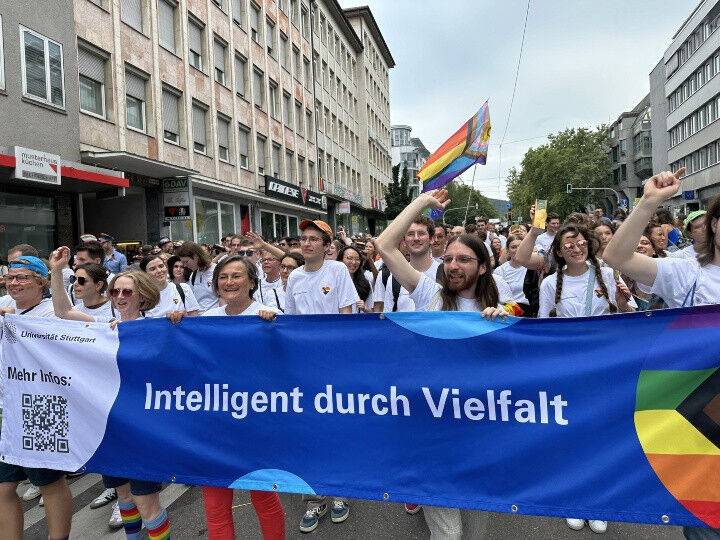 Durch die Teilnahme der Universität Stuttgart am CSD verdeutlichen wir unsere Haltung und tragen unser Motto ,,Intelligent durch Vielfalt" nach außen. Gemeinsam setzen wir ein Zeichen für ein respektvolles, wertschätzendes Miteinander, für Verbundenheit in unserer Verschiedenheit. Dies ist Grundlage für Offenheit, Teilhabe, Mitgestaltung, Kreativität, Innovation und somit für den Erfolg unserer Universität.