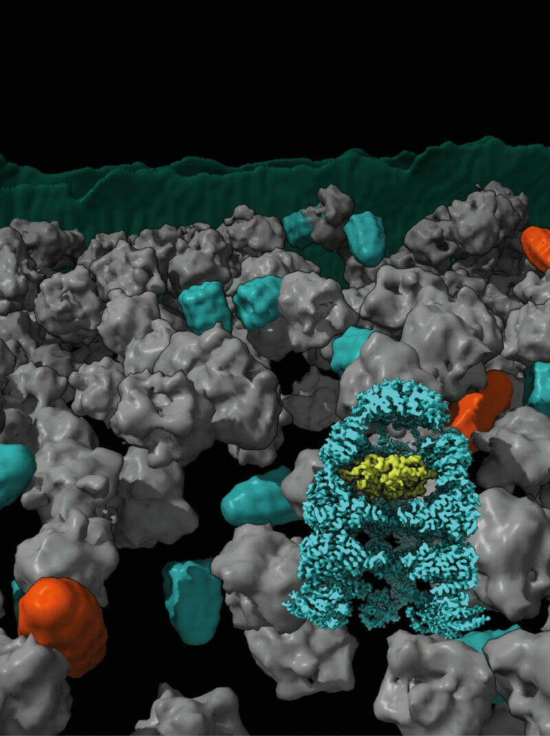 Mithilfe der Kryo-Elektronentomografie, kurz Kryo-ET, können zelluläre Strukturen in ihrer natürlichen Umgebung sichtbar gemacht und analysiert werden. Forschende vom Max-Planck-Institut für Biochemie in Martinsried bei München und der Universitätsmedizin in Göttingen haben mit dieser Technik Proteinfaltungshelfer, sogenannte Chaperonin-Komplexe, im Bakterium Escherichia coli untersucht. Die Forschenden konnten sowohl die Konformationsänderungen des Chaperonins als auch seine Wechselwirkungen mit dem Zielprotein in der Faltungskammer mit noch nie dagewesenen Detailgenauigkeit beobachten.