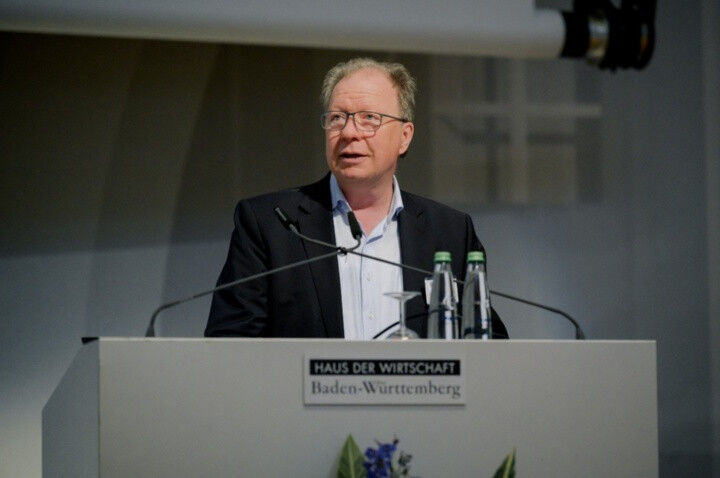 Ein weiterer Stipendiat, anfänglich mit einem Fulbright-Stipendium aus den USA nach Stuttgart gekommen, betont die Möglichkeiten, die das D’Stip ihm für das Studium biete. So könne er seine beiden Leidenschaften Architektur-Design und Biologie verbinden. Er bedankt sich explizit im Namen der Studierenden aus dem Ausland, dass auch sie für eine Förderung durch das Deutschlandstipendium in Frage kommen. Bild: Engels / Uli Schneider Wolfram Ressel die knapp 400 Gäste des Festakts zur Vergabe des Deutschlandstipendiums.
