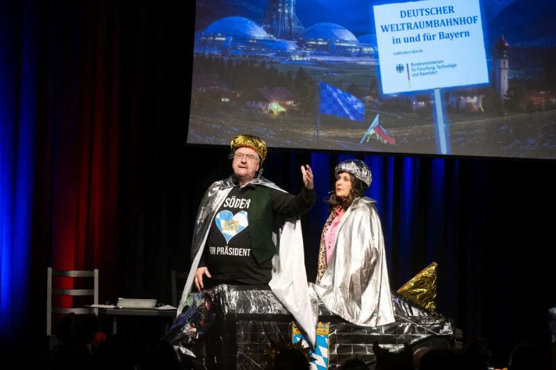 The highlight of the "Jeckcellence Initiative" was provided by Rector Professor Michael Hoch and his team-Dr. Martina Krechel, personal assistant Jonas Fehres and advisor Niklas Almasi. Their piece, "Completely Detached. A Ministry Takes Off!", showcased their hitherto unrevealed acting talent, as the Rector and the Rectorate’s managing director slipped into the illustrious roles of Bavaria’s state premier Markus Söder and Federal Research Minister Dorothee Bär. A conspiracy orchestrated at her ministry’s Bonn office saw the two political heavyweights suddenly sitting inside a rocket that was in orbit with no way of getting back to Earth-a vicious satire on current research policy at the federal and state governments.