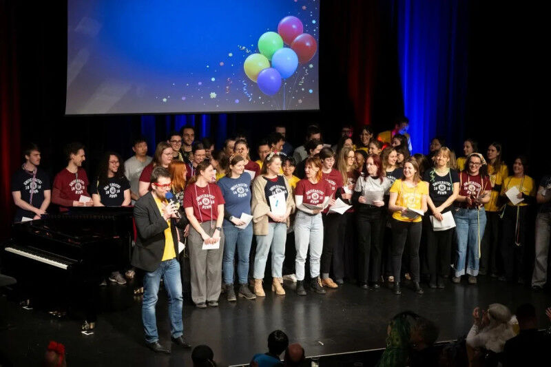 Next up was the University of Bonn’s International Choir: some 50 students and doctoral candidates from 17 countries took to the Forschologicum stage for the first time and gave everyone in the audience goosebumps with their performance. Conducted by Martin Kirchharz, a Rhinelander well versed in the local dialect, the choir sang the Carnival classic "Wenn et Trömmelche jeht" ("When the Little Drum Sounds") in Rhenish, Dutch, French and Norwegian. It was a powerful symbol of international understanding in academia that had the whole theater singing along.