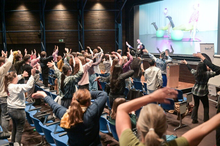 Highlights des Abends waren die wissenschaftlichen Beiträge zweier Doktorand*innen: Felicitas Leese vom Institut für Raumfahrtsysteme präsentierte sehr unterhaltsam Einblicke in ihre Forschung zu Lebenserhaltungssystemen von Astronaut*innen. Espen Xylander, SimTech-Doktorand am Institut für Analysis, Dynamik und Modellierung, zeigte in seinem Vortrag, wie sich selbst komplexe Themen, wie die mathematische Beschreibung von Flüssigkeiten, kreativ, spielerisch und für alle verständlich vermitteln lassen. Die Pause belebte Dua Look mit einem energiegeladenen Queerobics-Programm, mit dem sie die Besucher*innen von ihren Stühlen riss. Das Duo Kim Hoss und Nasim sorgte für den musikalischen Rahmen.