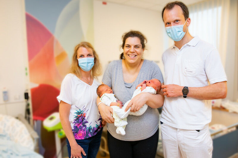 Hebamme Nina Meier, Patientin Sina B. mit ihren Zwillingen Elisa und Clara sowie Rüdiger Klapdor (von links). Copyright: ,,Karin Kaiser / MHH'. MHH-Spezialsprechstunde bei Zwillingsgeburten oder Beckenendlage Stand: 02. In Deutschland kommen immer mehr Kinder per Kaiserschnitt zur Welt. Dabei ist diese Art der Geburt in vielen Fällen medizinisch gar nicht unbedingt notwendig. Selbst wenn eine Schwangere Zwillinge erwartet oder das Ungeborene in der Beckenendlage liegt, heißt das nicht automatisch, dass sie nur durch einen Kaiserschnitt entbinden kann. Seit dem Frühjahr gibt es für diese Frauen in der Frauenklinik der Medizinischen Hochschule Hannover (MHH) eine Spezialsprechstunde.