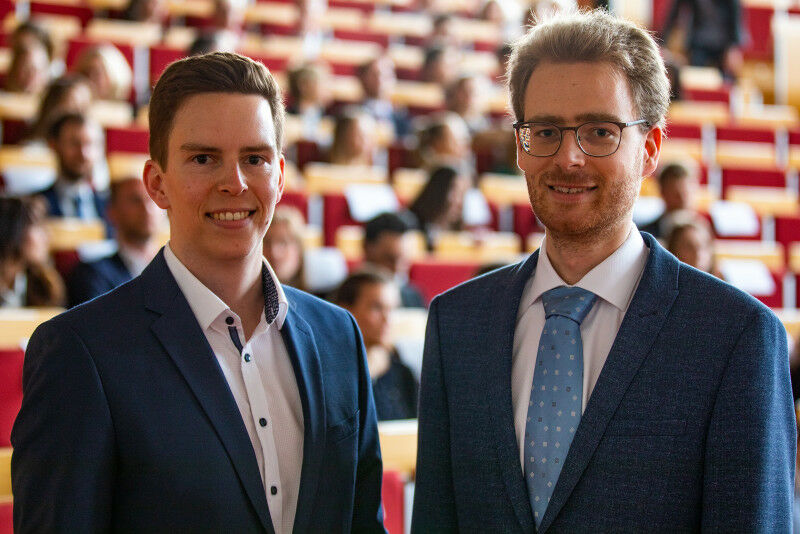 Die beiden Promotionspreisträger Dr. med. Christian Niehaus (links) und med. Liart Pollmann. Copyright: Karin Kaiser / MHH