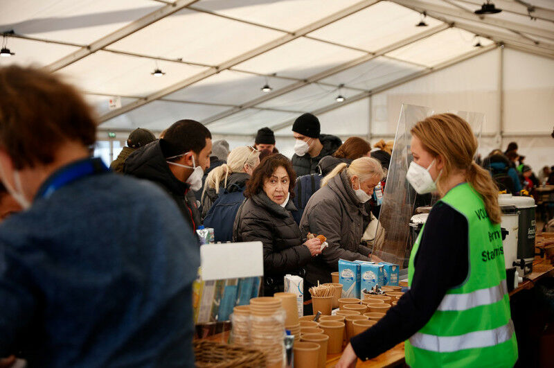Überraschend hilfsbereit: Freiwillige Helferinnen und Helfer versorgen am Hauptbahnhof in Berlin Menschen, die vor dem Krieg in der Ukraine geflüchtet sind.