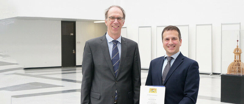 Giorgio Sangiovanni ( rechts ) ist neuer am Würzburg-Dresdner Exzellenzcluster ct.qmat. Er hält die Berufungsurkunde in den Händen, die er am 10. Oktober 2023 vom Präsidenten der Universität Würzburg, Paul Pauli, erhalten hat. (Bild: Robert Emmerich / Universität Würzburg) Giorgio Sangiovanni ist Experte für das computergestützte Berechnen von Quantenmaterialien. Er leitet in der Physik einen neuen Lehrstuhl, der vom Wissenschaftsministerium mit 1,5 Millionen Euro gefördert wird. Giorgio Sangiovannis Knowhow ist unerlässlich, damit experimentelle und theoretische Physiker:innen gemeinsam Spitzenforschung betreiben können - so wie es im Würzburg-Dresdner Exzellenzcluster ct.qmat - Complexity and Topology in Quantum Matter der Fall ist. Meist fängt Sangiovanni mit der chemischen Zusammensetzung eines Materials an, wenn seine Kolleg:innen ihn um Hilfe bitten. Der Physiker ist internationaler Theorie-Experte.